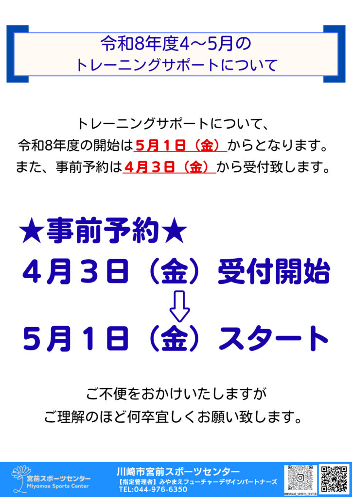令和8年度4・5月のトレーニングサポートについて